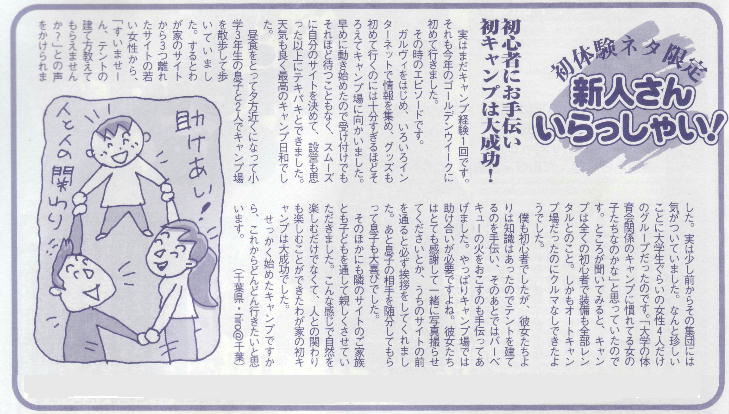 | 1 初心者にお手伝い 初キャンプは大成功 2005.8月号 |