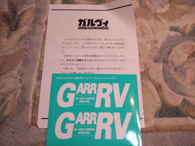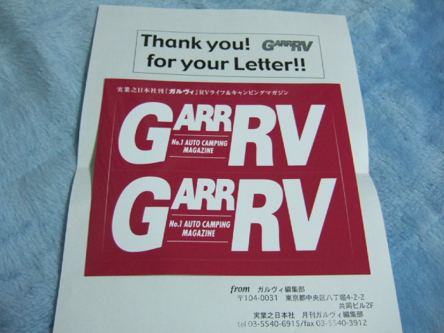 千葉キャンパーの青木さんにいただいたガルヴィのステッカーは持っていたんですが、初めて正式にガルヴィのステッカーをゲットしました。色は萌葱色?緑系でした。まだ当時はハンドルネームがhiro@千葉でした。 |