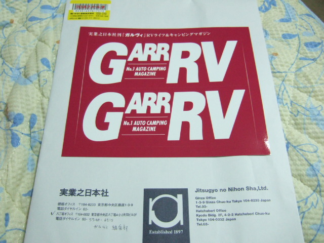 数少ないオートキャンプの専門誌「ガルヴィ」以前はRV雑誌だったようです。我が家がキャンプを始めるにあたって愛読し始めたバイブル的な雑誌です。買い始めた頃は売っていない本屋もあって苦労しましたが今ではどこでも手に入ります。オートキャンプ人気が高まっている証拠ですね。